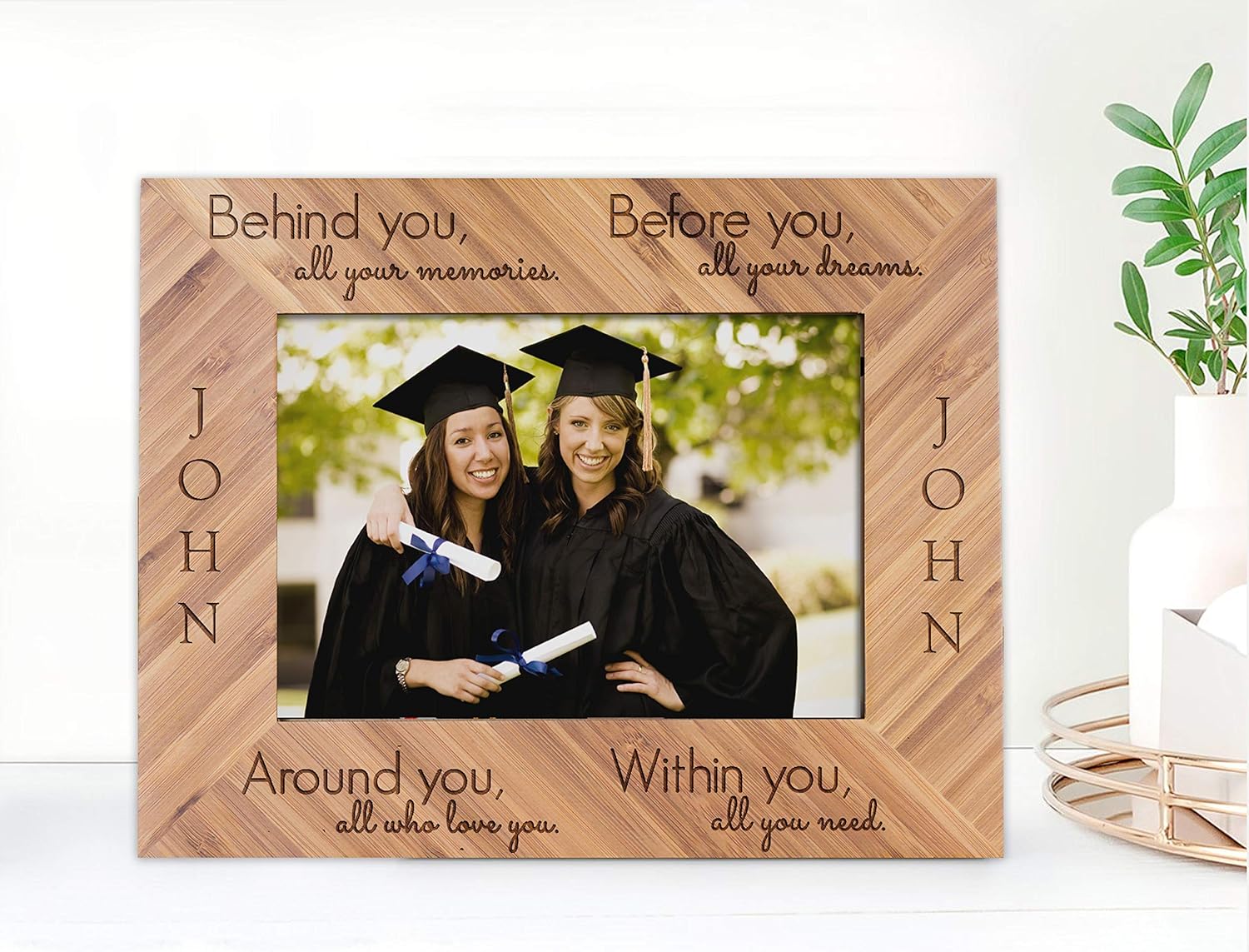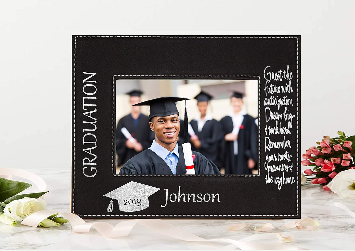 Personalized Laser Engraved Graduation Picture frame is perfact gift for Newly Graduate. The listing is for ONE personalized picture frame with a glass and folding easel back that allows for a vertical or horizontal orientation. All our frames are made to order for your custom need. Laser engraving is perform by industry leading high tech laser machine to create elegant personalized gift.