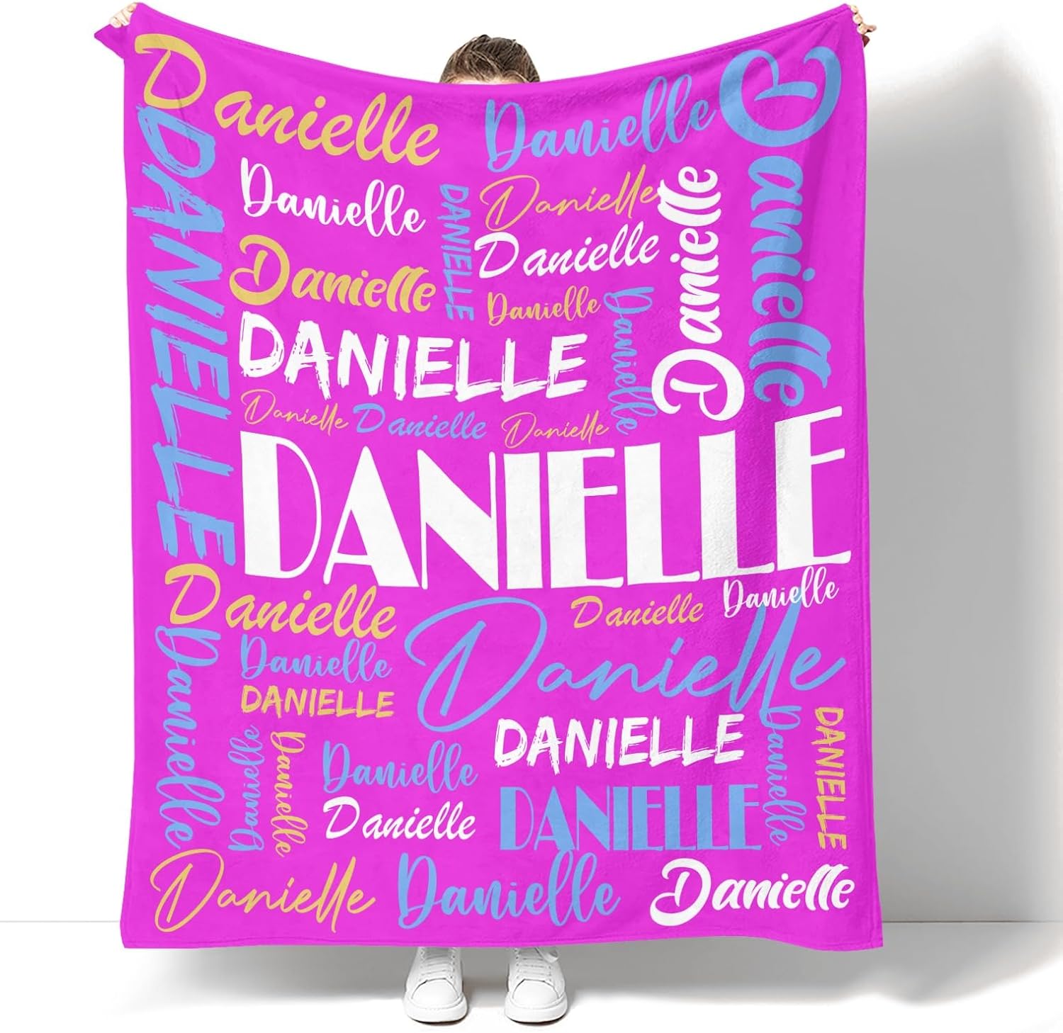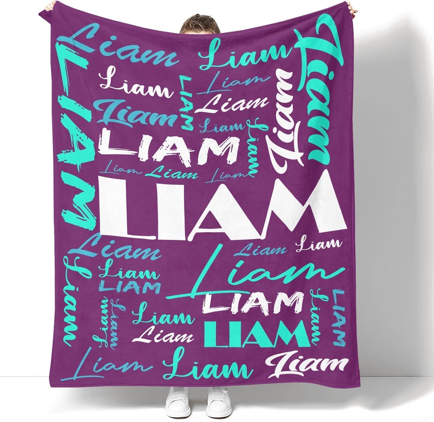 Personalized Blankets with Name Personalized Name Blanket for Kids Adults Custom Blanket with Name Super Soft Flannel Throw Blanket Monogrammed Blankets Gift for Birthday Christmas Mothers Fathers Valentines DayFeatures:1.Design your own special fluffy plush ultra-soft micro flannel personalized blankets with name or text you want.2.Made of high quality anti-pilling flannel personalized name blanket, which is soft touch, pilling resistance, wrinkle resistance, durable and comfortable, have a good touch and friendly to your skin, your kids, your family.3.Suitable for all seasons, perfect for bed, sofa, camping, cold movie theater or traveling.Believe us, this personalized blankets for kids and adults will bring fun and warmth to your family.4.Easy to Care: Machine washable or hand washable, tumble dry at low temperature, holds several machine wash and dry beautifully.This blanket with name still has a bright color after being used multiple times.No matter what name you provide, we will print them well on your personalized blanket, which will be the most unique gifts or souvenirs on various holiday, anniversaries.Perfect gifts for Birthday, Christmas, Mothers Day, Fathers Day, Wedding, Anniversary Valentine's Day.How to Customized1.Choose the size and color you want2. Click "Customize Now" button3.Provide your names or your text,we will achieve your expected effect as plan4.Add to cartAttention Please:1.The font and color are the same as those shown in the picture.2.The name you provide should be UPPERCASE name, up to 15 characters, letters only.