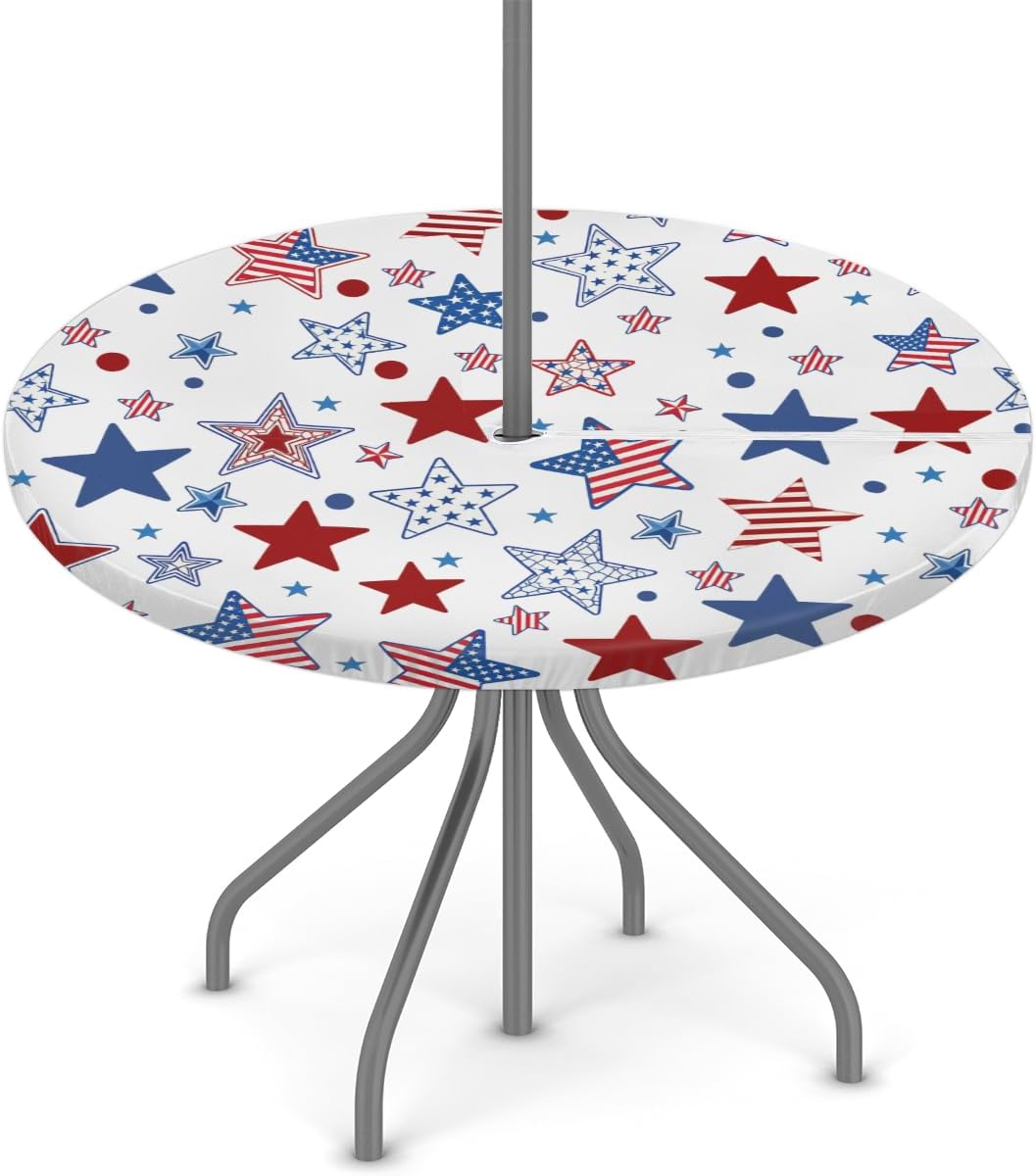 Outdoor Round Tablecloth with Umbrella Hole, 4th of July Outdoor Umbrella Table Cover Sunflowers Fitted Table Cloths with Zipper 45"-56" Waterproof Elastic Edged Patio Table Cover for Party Picnic